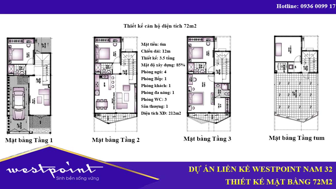 • Diện tích từ : 72m2 – 85m2 (căn thường), 100m2 – 157m2 (Căn góc)